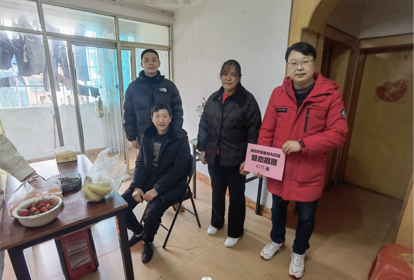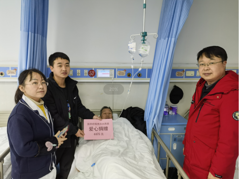 国控贵州大药房公司总经理陈诚、党支部书记张莹莹等人前往医院,亲手将捐款及慰问金交于职工家属手中,送上公司的关怀以及全体职工的关心。