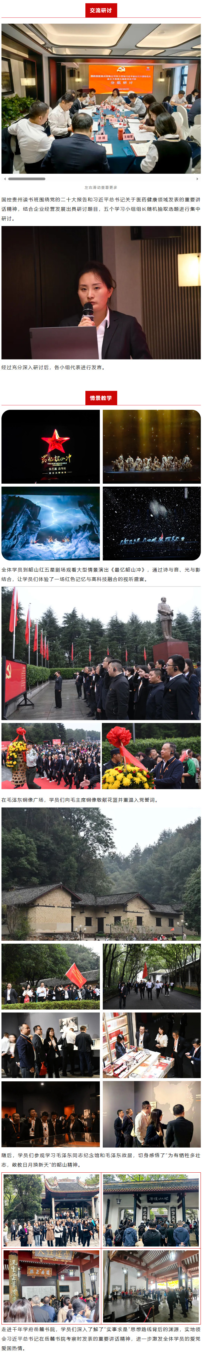10月25日至28日,国药控股贵州有限公司在韶山举办学习贯彻习近平新时代中国特色社会主义思想主题教育第二期读书班。
