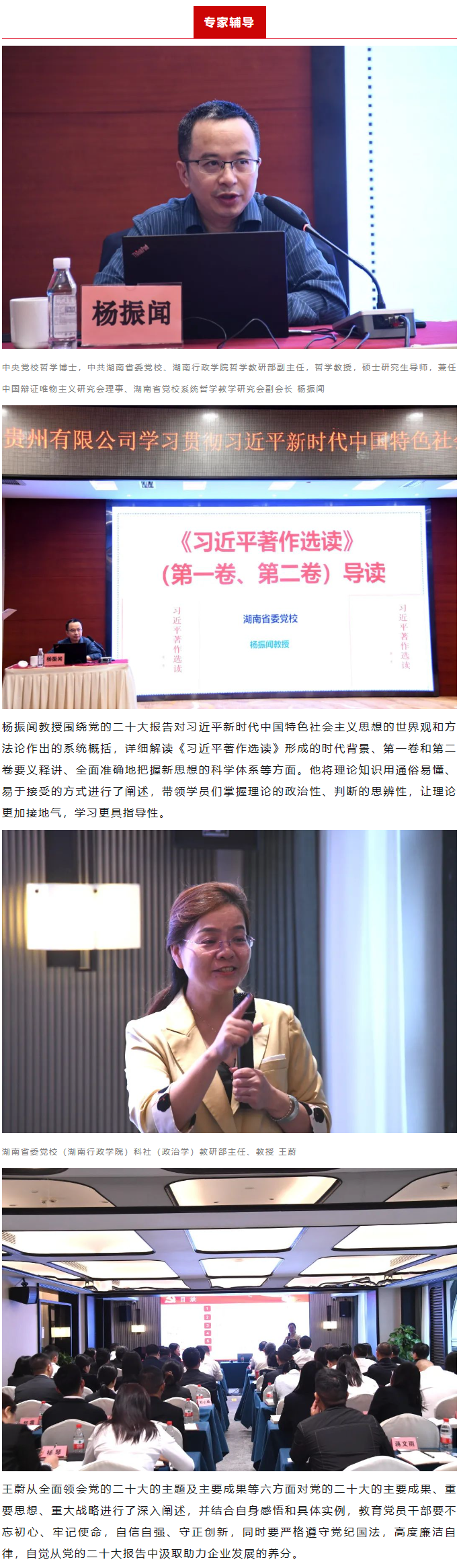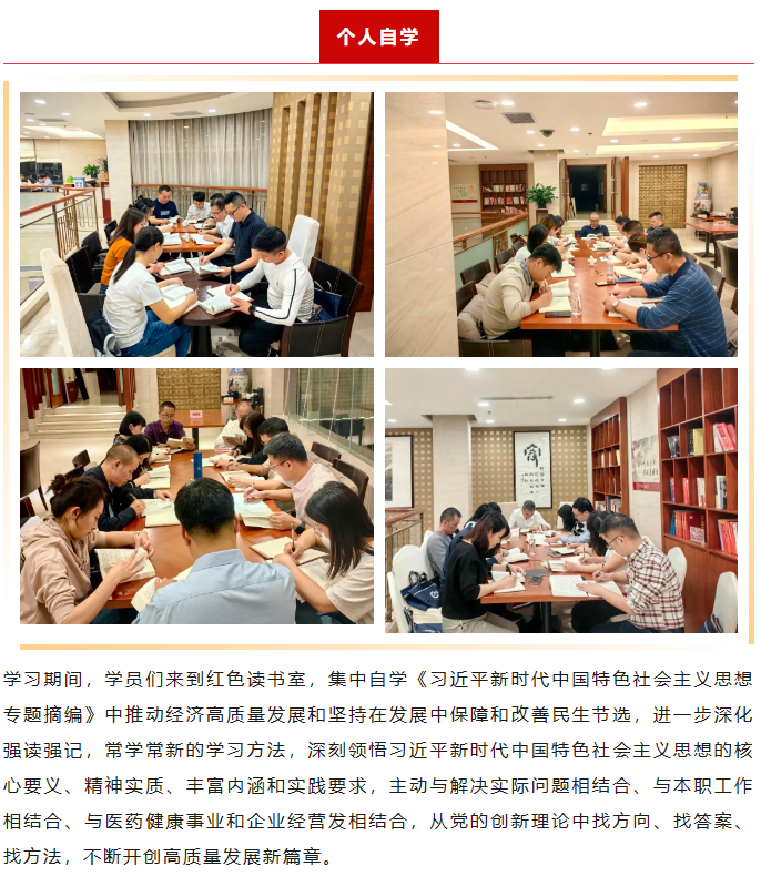 国药控股贵州有限公司党政领导班子、本部中层干部、全级次企业党支部书记、总经理或主持工作的副总经理、党员领导班子以普通学员的身份,通过集中学习、个人自学、专家辅导,交流研讨、情景教学等方式,深入系统学、带着问题学、联系实际学、专心致志学,深入学习贯彻习近平新时代中国特色社会主义思想,全面学习习近平总书记关于医药健康领域的重要讲话精神。
