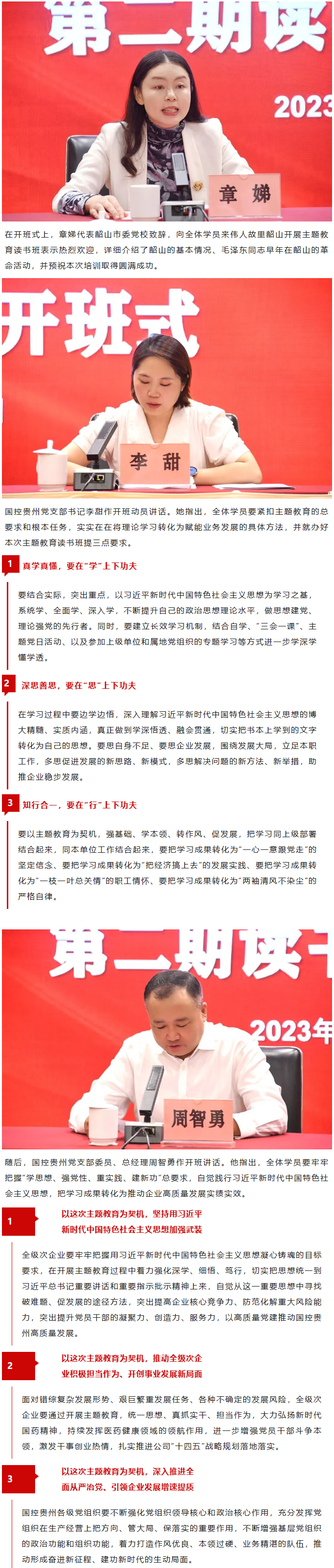 韶山市委党校副校长章娣、国药控股贵州有限公司党政领导班子、本部中层干部、全级次企业党支部书记、总经理或主持工作的副总经理、党员领导班子参加。