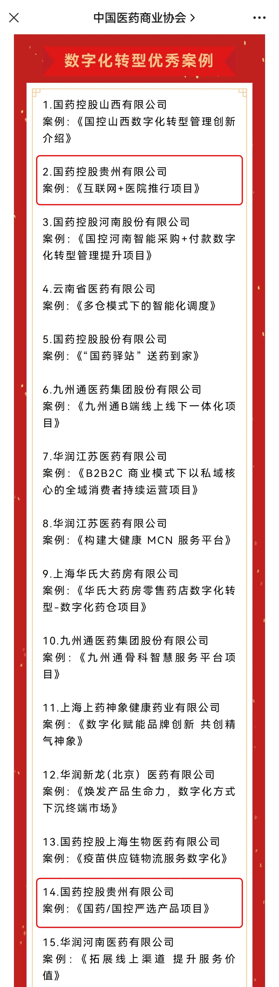 上榜了!国控贵州荣获中国医药商业协会数字化转型优秀案例