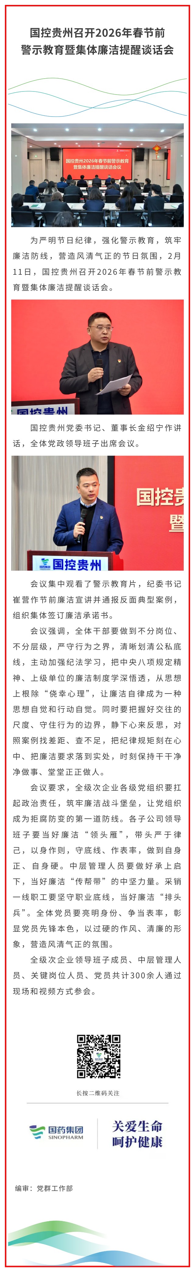 国控贵州召开2026年春节前警示教育暨集体廉洁提醒谈话会