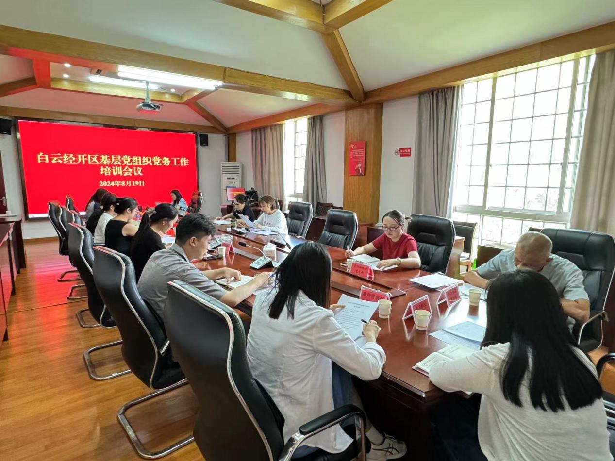 培训主要分为五个板块,一是传达学习《中共中央办公厅关于进一步加强和改进流动党员管理工作的意见》;二是传达学习中共中央办公厅关于《中国共产党不合格党员处置办法》的通知;三是培训《贵州白云经开区管理委员会党费专户财务报销制度》;四是培训通报各基层党组织党费情况;五是党务知识培训。