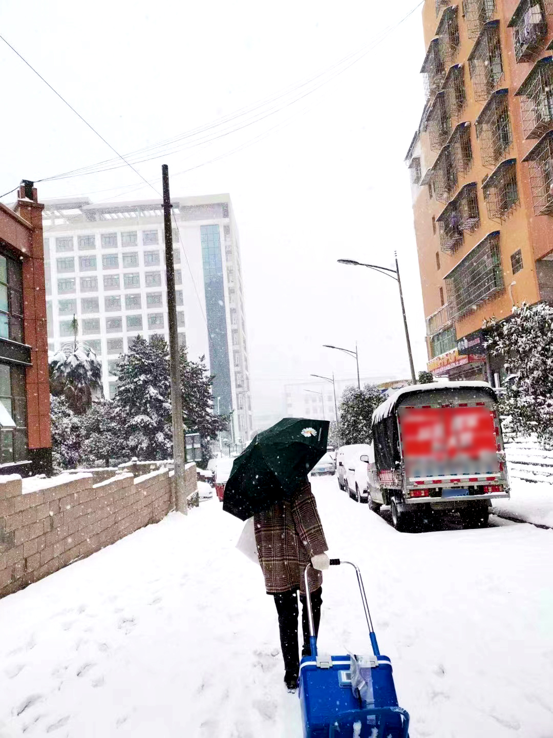 吃力地提着保温箱将药品无误配送到院